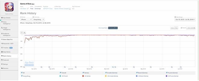 (图3:游戏在香港地区长期处于免费榜前列)