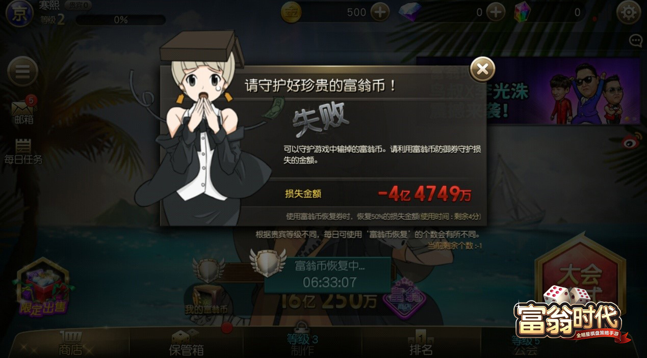 视频链接: 17173:http://v.17173.com/v_102_609/MzU5Nzg5Mjg.html 优酷 :http://v.youku.com/v_show/id_XMTY5OTg5MDUxNg==.html?beta& 土豆 :http://www.tudou.com/programs/view/RXJD6bYK7fY/ 56:http://www.56.com/u17/v_MTQxNzA3NDYy.html 爱奇艺:http://www.iqiyi.com/w_19rsvzuu3p.html 乐视:http://www.le.com/ptv/vplay/26383530.html A站:http://www.acfun.tv/v/ac3051060 搜狐:http://my.tv.sohu.com/us/257856295/85003202.shtml 风靡亚洲的全明星棋盘策略手游《富翁时代》,8月31日国服全平台上架 《富翁时代》是一款基于大富翁类型基础之上的创新手游。游戏拥有独特的RPG路线玩法,策略性更强。同时明星偶像PSY鸟叔和Running Man成员李光洙的加入,给玩家们带来别有风格的乐趣。让你随时随地,轻松玩转富翁style!此前游戏风靡了韩国,香港等多个亚洲国家和地区,获得苹果、谷歌等权威平台推荐。游戏在经过一段时期的优化筹备之后,终于即将于8月31日安卓和iOS国服全平台上架,大家马上可以体会到风靡亚洲的全明星棋盘策略手游《富翁时代》的独特魅力! ![]() (图1:Running Man李光洙作为角色植入游戏)