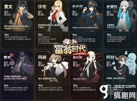 可以成为一部漫画,但我还只是个游戏 《富翁时代》的整体画面风格采用了唯美的二次元日漫风,剧情围绕着邪恶艾克斯博士举办“天才联赛”邀请世界各地能力者展开。目前已经开放了15名拥有自己背景和独特个性的可控角色。他们除了在游戏里有不同的属性侧重点和能力侧重点外,拥有自己的背景故事,性格爱好,甚至独立的语言和动作。丰富的剧情和角色让《富翁时代》完全可以成为一部独立的漫画进行阅读。同时,《富翁时代》手游与国内著名动漫发行“高能漫画”联手打造的同名漫画即将登录各大漫画平台,大家可以从漫画的角度感受整个故事的热血与战斗!