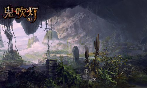 《鬼吹灯3D》手游场景原画中,在游戏风格上,凭借浓郁的东方写实画风,极力渲染出小说光怪陆离的鬼魅世界。不同于日漫的Q萌明亮和美漫的硬派写实,《鬼吹灯3D》的美术风格带有独特的东方写实色彩,白雪皑皑的雪山,危机四伏的沼泽,这些游戏场景与小说情节不谋而合。