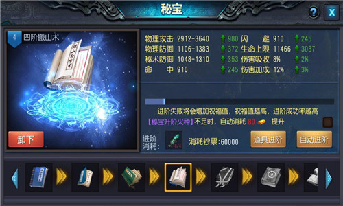 所谓摸金有符,卸岭有甲,在《鬼吹灯3D》中,有三种职业,分别为卸岭力士,摸金校尉,搬山道人,每个职业都有对应的秘宝,摸金校尉为摸金符,卸岭力士为卸岭甲,搬山为发丘印。不同职业派别的玩家通过升级进阶自己的秘宝等级,获得最大化属性上的提升,来提升自身的基础属性:比如攻击、防御、躲避及生命等。