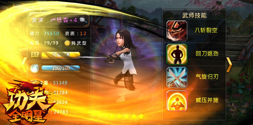 女侠·严咏春:是咏春门派武功高强的神秘女侠,手中所持的正是前段时间火透了的电影《师父》中的咏春八斩刀,该刀是咏春派镇派之宝!是实实在在的杀招。只有当咏春学到标指(咏春拳的高级套路)才有资格学习。其绝杀技“八斩裂空”正如咏春八斩的地位一样一招即出必杀敌方。特别是在自身血量低的时候,此技能一旦释放将激起暴走。 以上就是《功夫全明星》中一些经典技能的盘点,由于篇幅有限更多的技能还等各位玩家亲自去体验!常见的战斗系统和技能攻击已经在各大游戏中司空见惯,而《功夫全明星》的功夫技能是将经典中华功夫招式真实还原。呈现出超快感的战斗和拳拳到肉的打击感。让你体验最正宗的中国功夫! 请大家及时关注官方发布的资讯,期待下次不删档内测的开启。《功夫全明星》将为国内所有喜欢功夫的玩家重塑经典! 更多精彩游戏,请关注360手机游戏