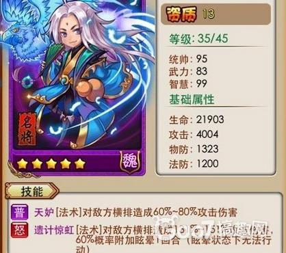 个人点评:横排能力输出非常可怕!无论技能还是普通,都是不错的选择,郭嘉基本上作为输出上是十分可怕的。技能附加的几率眩晕,更是有在关键时刻扭转乾坤的可能!