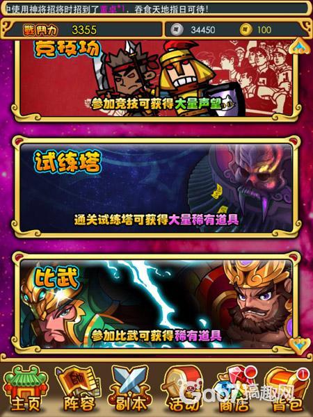 走自动对战模式的卡牌手游在操作没有任何亮点,《放开那三国》也不例外,所以本男也就无需复述,不过刚进入游戏的新手引导做得非常细致,对小白玩家而言非常友好;在耐玩性上,本作提供了除传统三大副本模式:普通,精英,活动副本之外,还有活动模式下的夺宝,竞技,试练,比武等多种模式,满足玩家在升到高阶等级之后游戏内容依然丰富。