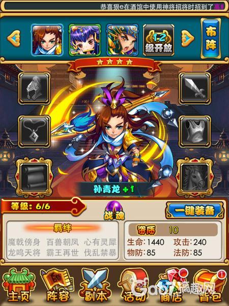 大多数的国内卡牌手游都有一个通病:它们在场景上就算做得多么磅礴大气,诡异妖媚,但在人设上绝对一个劲地致(shan)敬(zhai)光荣系的人设风格,山寨就算了,敢不敢让人物画面做得清晰一点?糊了本男一脸的马赛克让本男怎么玩啊?也正是如此,《放开那三国》的人设上虽然依然拖不开光荣系的影子,但人物更加精美清晰;而且Q版和霸气这两者的画风相得益彰,既可爱但也不失霸气。而在技能特效上,《放开那三国》更有表现力,每个技能都有一套独特的画面特效,结束了技能表现特效上的单调和无聊。