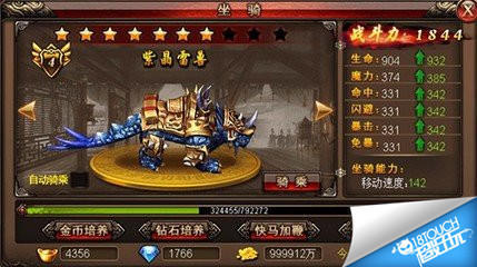 1、金币培养,提升坐骑固定经验,小几率产生暴击。