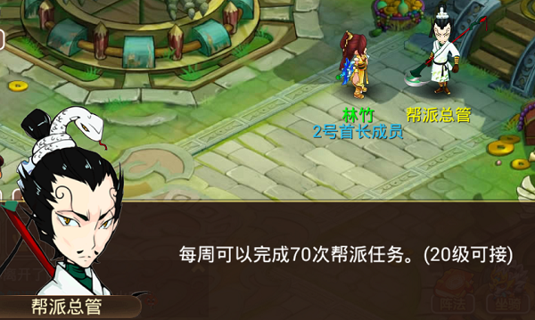 帮派任务是帮派重要活动,每周可以完成70次帮派任务。