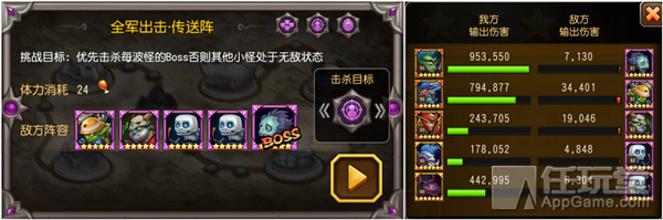 Boss 是最前面的那个单位,皮糙肉厚,血挺多的,用法师打效率不高,物理减甲单点比较合适。