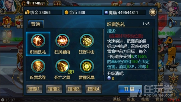 快速突进,把前面的目标击中挑起,召唤4道炽雷命中前方目标。5级技能:每个目标最多受到9次165%的基础伤害和150点的固定伤害。