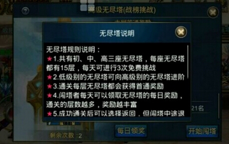 本次为玩家们卡BUG的方法是卡宝箱和金币袋,首先要连点一键闯塔,之后再点闯塔,系统在卡的时候玩家们就会获得金币和宝箱奖励,但是切记一定要继续保留一键闯塔,闯塔层不会跳到一键闯塔之后的层数,如果玩家们在第一层卡BUG成功了,就会拿到一键闯塔的奖励,使用方法一次类推,到了70层玩家们就可以花70金币,拿到90层的所有奖励。