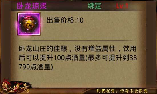 通过卧龙山庄内的火龙宝藏玩家可以获得卧龙琼浆增加自身酒量,而神秘宝藏可开出的卧龙卷轴又是制作高级装备的必须材料,所以有条件、有实力的玩家不妨多去参加卧龙宝藏活动,产出的奖励还是非常不错的!