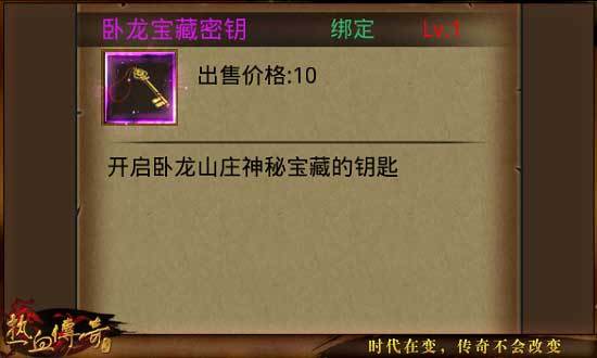 4、云游商人处不定期出售宝箱钥匙,在他那能购买到卧龙宝藏密钥。