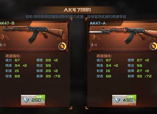 2.AK47可以换购AK47-B(永久)或者AK47-A(永久),需要250钻或450钻。