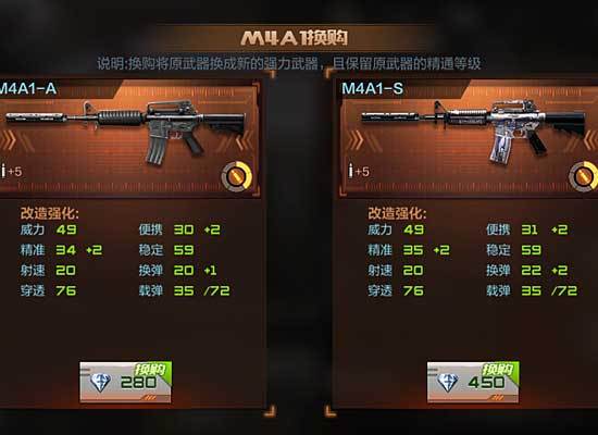 1.M4A1可以换购M4A1-A(永久)或者M4A1-S(永久),需要280钻或450钻。