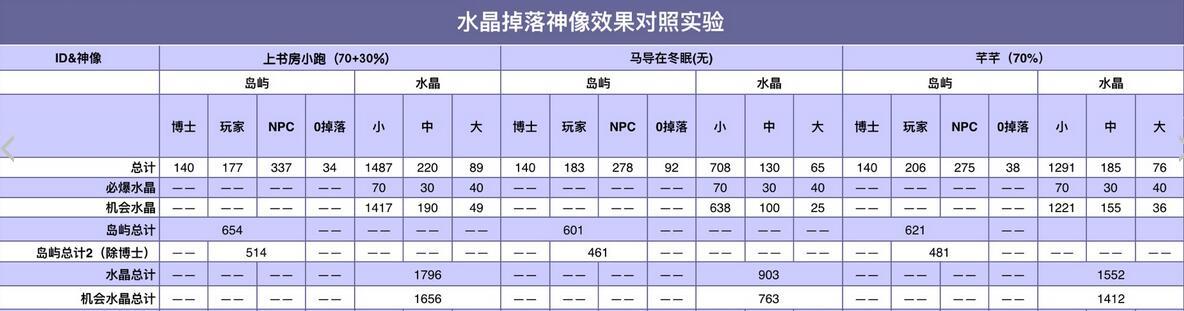 针对问题1解答:时间越长,水晶总量的差距就越明显。放置掉落雕像,会大大增加每岛爆出的机会水晶数。