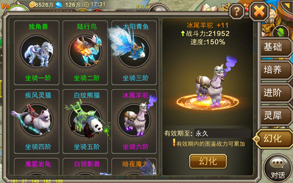 玩家在获得了多种坐骑形象之后可以自由选择幻化,幻化之后坐骑的属性和移动速度都会保持当前最高阶的属性不变,所以不用担心幻化之后自己的坐骑跑得不够快哦。