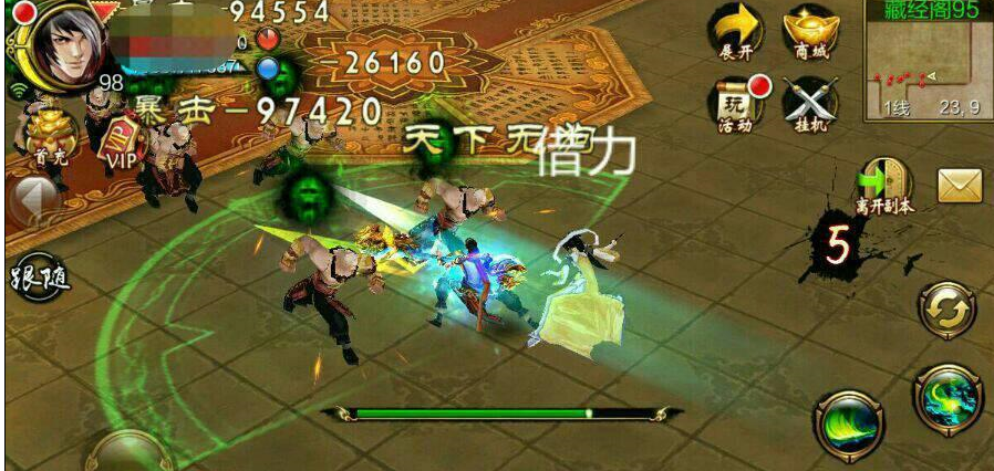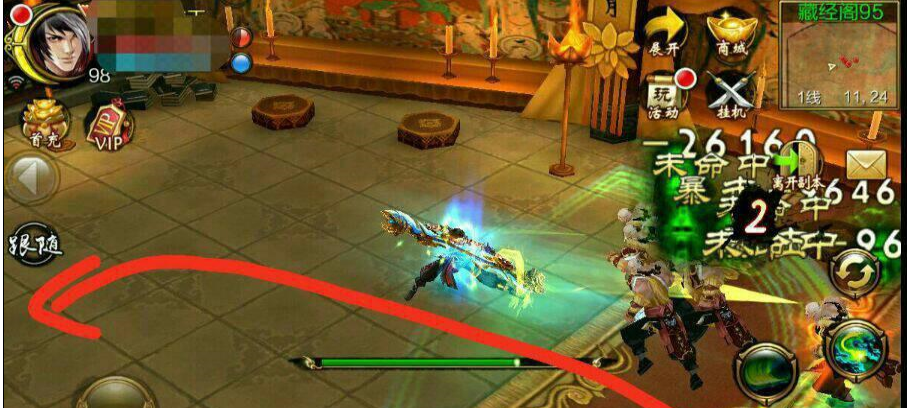 每5层藏经阁会有一个boss,boss血厚伤高,需要多饶几圈才行。