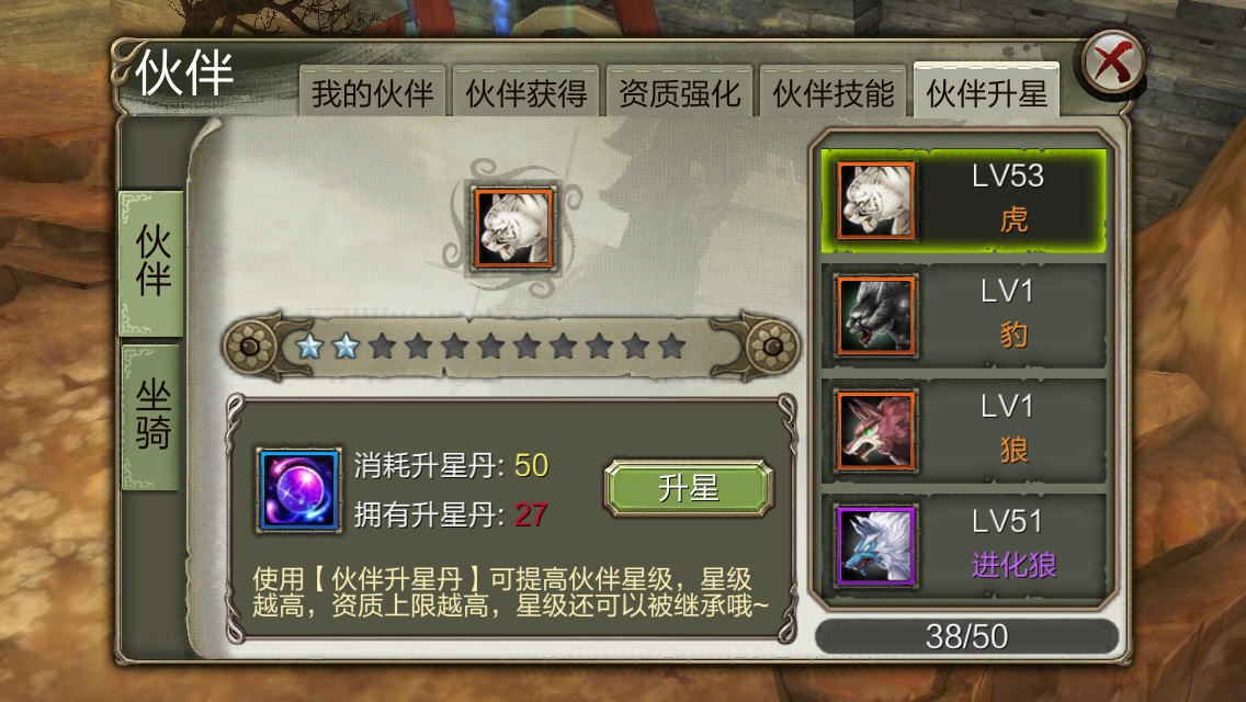 天龙八部3D游戏中,宠物分为动物型宠物与人型宠物,这些宠物伙伴的养成对于提高玩家属性与战斗力,有着重要的作用!前面了解了如何获取伙伴,给伙伴配资质同时提高伙伴技能,下面就针对如何给伙伴升星,带来攻略介绍!
