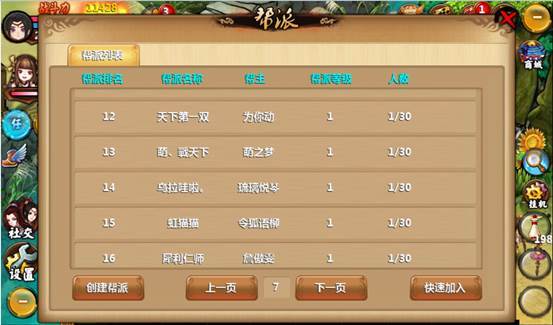 达到20级,帮派会进行开启,帮派可以召集你的朋友或其他游戏玩家一起打造,帮派内可以设置帮主,副帮主,长老职位,每个帮派都有自己的驻地,在里面有超高收益的帮会任务,并且帮派任务获得的帮贡还可以在商城购买道具哦。
