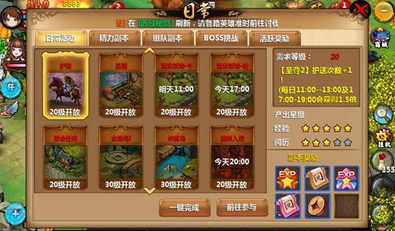 再此也会开启第一次的副本体验,副本需要通过精力点才能进入,副本中可获得装备和装备材料,随着等级的提升后续的副本也会越来越强大,爆出的装备或者材料也会越来越好。