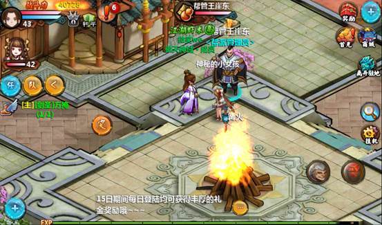 帮会任务是需进入帮会的玩家才能参与到,每日全天可以在帮管王崖东处参加5轮帮会任务,收益也是相当的高,并且可获得帮贡(帮贡可在商城购买商城道具哦),还可在关二爷处进行烧香,烧香分为三类:普通烧香,礼金烧香,元宝烧香。烧香后会分别获得二锅头,女儿红,桂花酿。它们都可在帮会篝火处进行使用,使用后会自动打坐,使用的酒不一样获得的收益也存在很大的关系哦~