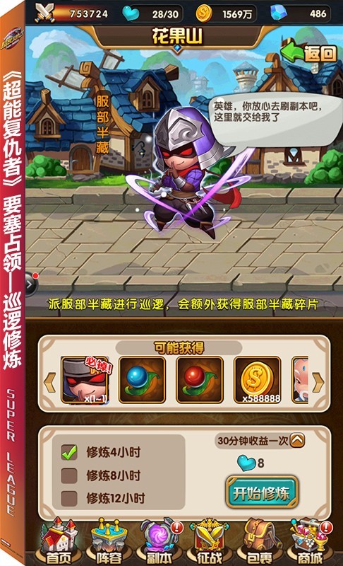 巡逻又被称作“修炼”,一共分为三档不同时间不同程度的奖励,除了可能获得的奖励外,还能获得该巡逻英雄碎片,对于英雄突破起到一定帮助。