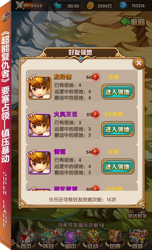 在要塞占领界面,点击右下角“拜访好友”,当好友等级右侧出现红色小钻石时,说明该好友的要塞中发生了暴动,玩家们可以前往帮助好友镇压暴动来获取钻石奖励。