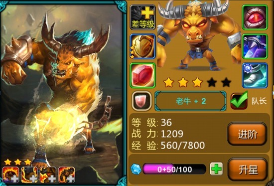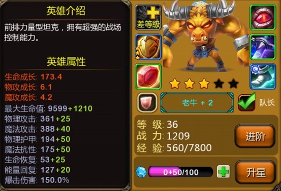 光看着技能的名字是不是就已经被吓到了,好好发育你的老牛吧,他会给你想不到的惊喜!!!下面给一张属性图供参考一下:
