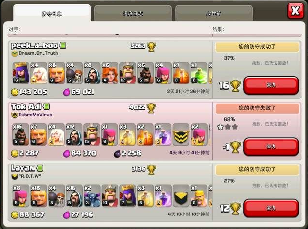 部落冲突九本最强冲杯阵只限防同本,10本随便打的,看防守记录,黑也没怎么被爆,都是重兵全药水。那下面一起看看今天的九本最强冲杯阵吧。..