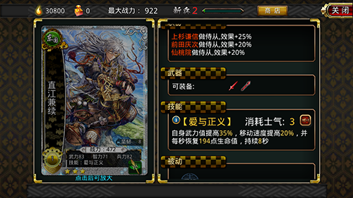 五枪组合,顾名思义就是五个枪兵大队,这种打法的主要套路就是强化自身,弱化对手,各种给自己加血加状态,在增强自己的时候削弱对手,并用不断的回血和对手打阵地战,最终磨死敌人的玩法。正是由于这些特性的结合,所以在前期的推图和PK中基本不会遇到太多的问题,拿奖励妥妥的。如果打算走五枪的话开局最好选择服部半藏或者直江兼续,3气的技能强化自身并回血,很好用。