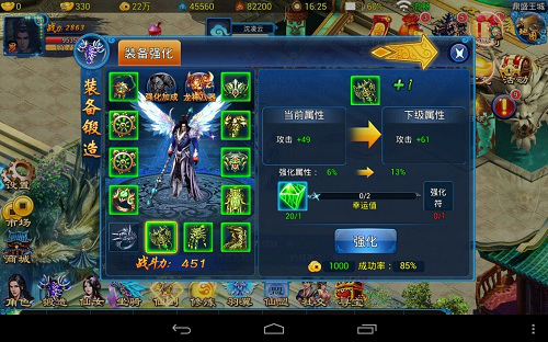2.装备升级----穷人福音,30级装备开始,每10级升级一次,防具副本每天有2次免费次数、武器副本免费10次、装备轻松升级50以上不是问题。加战力比较高。