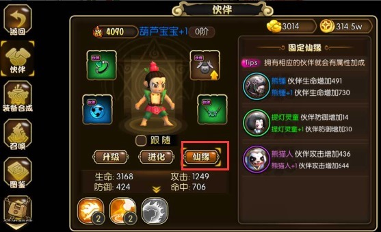 仙缘:众妖特别的仙缘系统,拥有相应的伙伴就会有属性加成