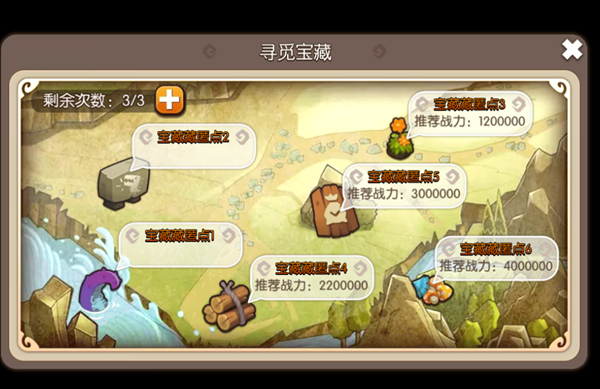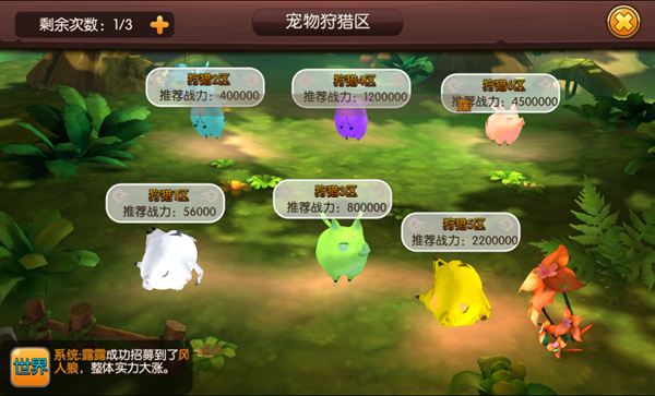 战胜后会随机获得道具,狩猎会获得专门给宠物升级的灵猪。宝藏会获得专门给饰品升级的经验项链和戒指。