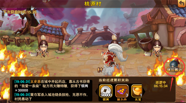 当城池处于巡逻状态时,有时会触发巡逻事件,一种为奖励事件,另一种为暴动事件。