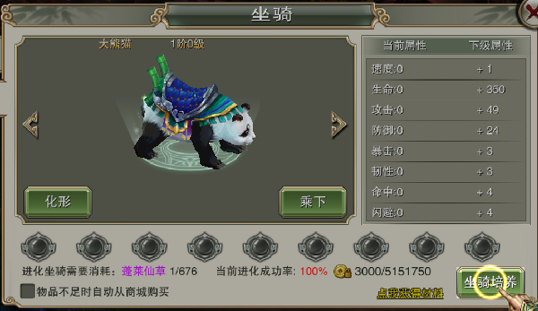 3.升级坐骑消耗蓬莱仙草,坐骑的等级与主角等级无关。
