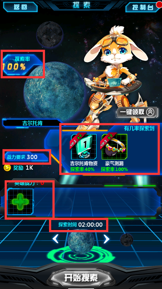 只有达到每个星球的探索要求(足够的英雄和战力)后才能进行探索。