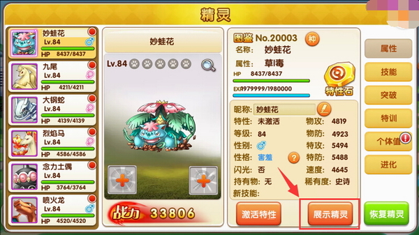 但是在《口袋妖怪:起源》中我们可以直接向整个世界炫耀我们的成功,只要您在精灵面板中选择展示精灵,就可以将您获得的精灵向全世界宣告——这只精灵我承包了!