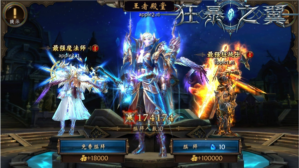 ★玩家进入王者殿堂后,可以对3个守护者雕像进行膜拜,免费膜拜可以获得少量金币,钻石膜拜可以获得大量金币;