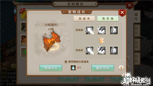 天技可不像宠物成长那么好洗,有时候花费很多归元露也洗不出来,主要看脸。