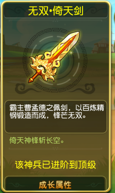 以曹操的专属神兵-倚天剑给大剑介绍一下神兵系统。