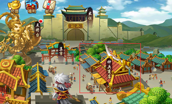 我们可以在游戏主界面找到神兵商店,神兵商店里面贩卖全部武将的神兵。只需要一点铸晶石就可以买到心仪武将的专属神兵啦。
