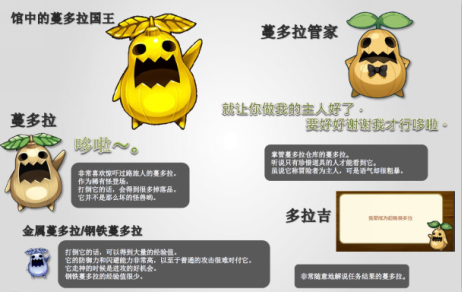 哆啦~非常喜欢惊吓过路旅人的蔓多拉,作为稀有怪登场,得到它的话,会得到很多掉落品。它并不是那么坏的怪兽哟。