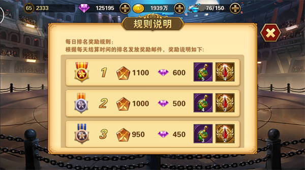 竞技场玩法奖励