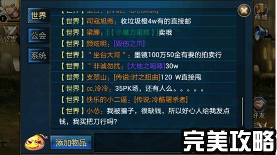 系统这个选项可以让玩家知道,玩家最近发生了什么事件。系统公告能传递最新最快的游戏动态。添加物品这个按钮可以给你展示物品的功能,在你需要交易的时候,在聊天输入行旁边