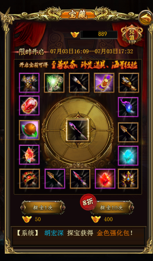 玩家不仅是可以得到装备,还有很多的金币包,强化包等等都是可以有几率得到的,玩家摸金一次需要50的元宝,玩家还可以花费400的元宝进行10次的摸金,这样的话相比之前一次一次的摸金能节省100的元宝,也就能多摸金两次了。