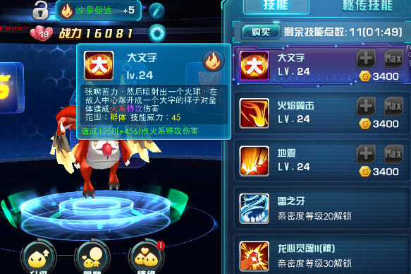 沙拉曼达的技能以群攻居多,秉承了火系精灵攻击高的特性,并且有非常可观的速度,保证先手攻击~~