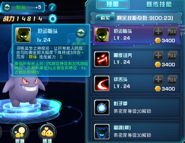 耿鬼的技能附带DEBUFF,降低双防双攻以及命中,不可谓是打家劫舍杀人放火必备宠物~~