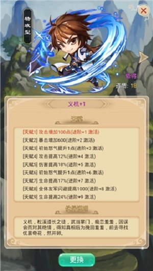 进阶除了直接提高属性之外,更加重要的是能够开启天赋。每一次进阶都会开启对应的天赋,天赋1和天赋2一般来说是直接提高一些攻防属性的数值,中层的天赋则将会以十几个百分比的形势来提高,高层的天赋甚至能够提供20个百分点以上的提高,或者为自己和队友提高数以千计的属性数值。这些提升累积起来会十分夸张,令人嗔目结舌。