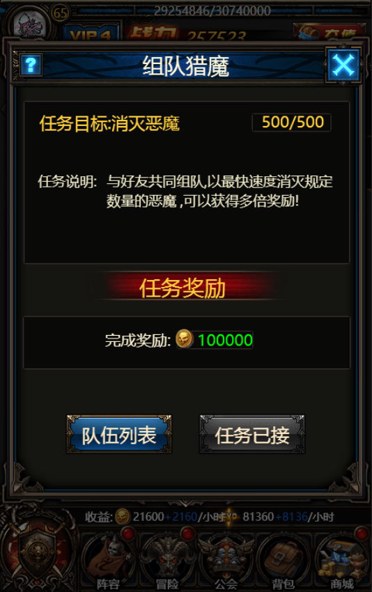 3、组队成员共享杀怪数量(必须同在力魔地图内)