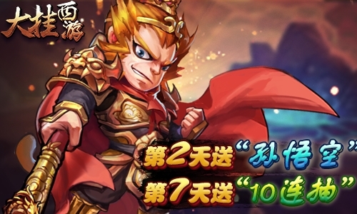 活动说明:在活动期间内,玩家第2天登录即可获赠神将“孙悟空”,第7天登录更可获得神将“免费10连抽道具”,仙晶?法宝?秘籍?还不够?更多豪礼等你来开启!